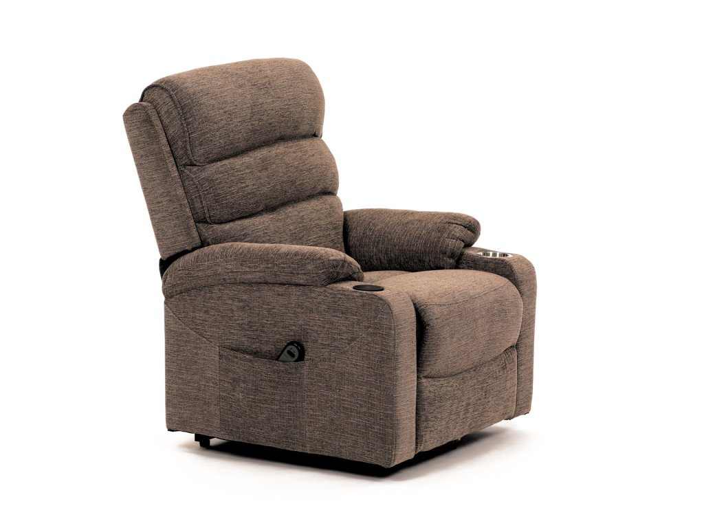 TV a relaxační křeslo s elektrickým ovládáním, potah cappuccino látka, 2 motory