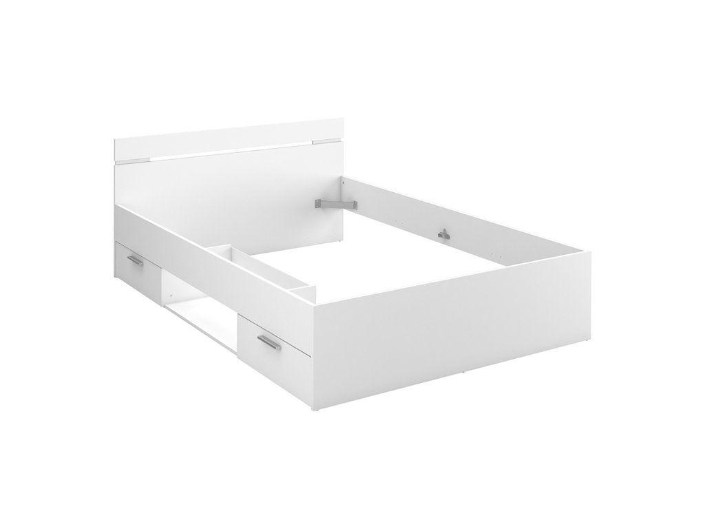 Elegantní perleťově bílý povrch ladí s moderním interiérem. Rozměry postele jsou přizpůsobeny standardní matraci 140 × 200 cm, výška a hloubka umožňují pohodlné užívání a snadný přístup k úložným prostorům.