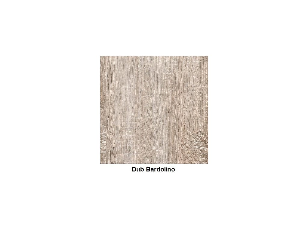 Postel je vyrobena z hrubého lamina DTD, které je odolné proti poškození a snadno se udržuje. Stabilitu zajišťují elegantní dřevěné stříbrné nožky.