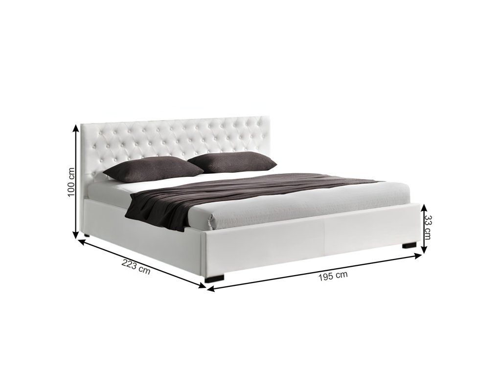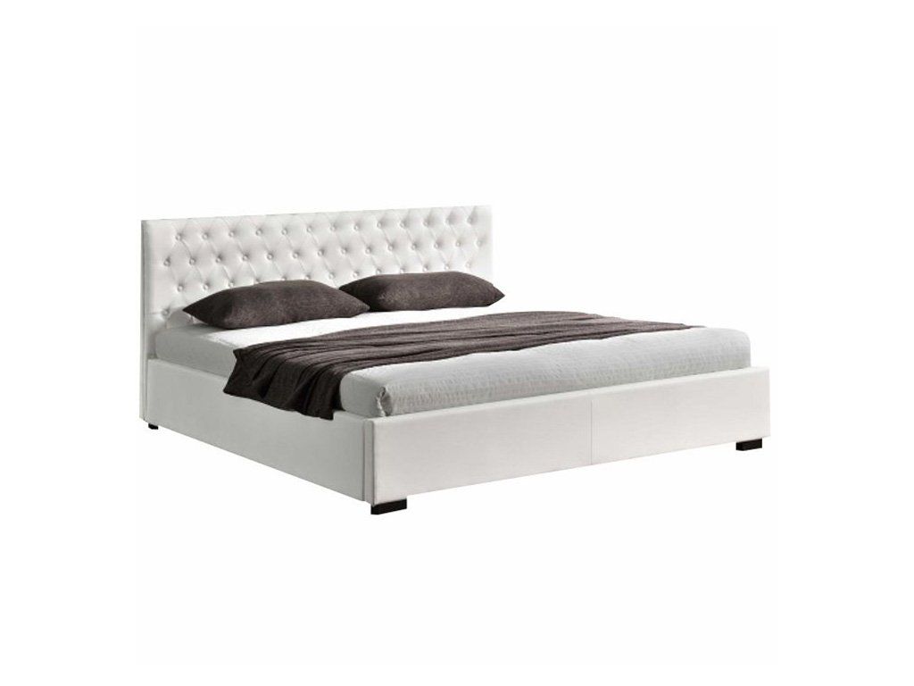 Postel DORLEN 2 NEW s prošívaným čelem, úložným prostorem a výklopným lamelovým roštem. Barevné provedení bílá ekokůže.Oderuodolnosť textílie podľa testu Martindale: 100 000 oderov