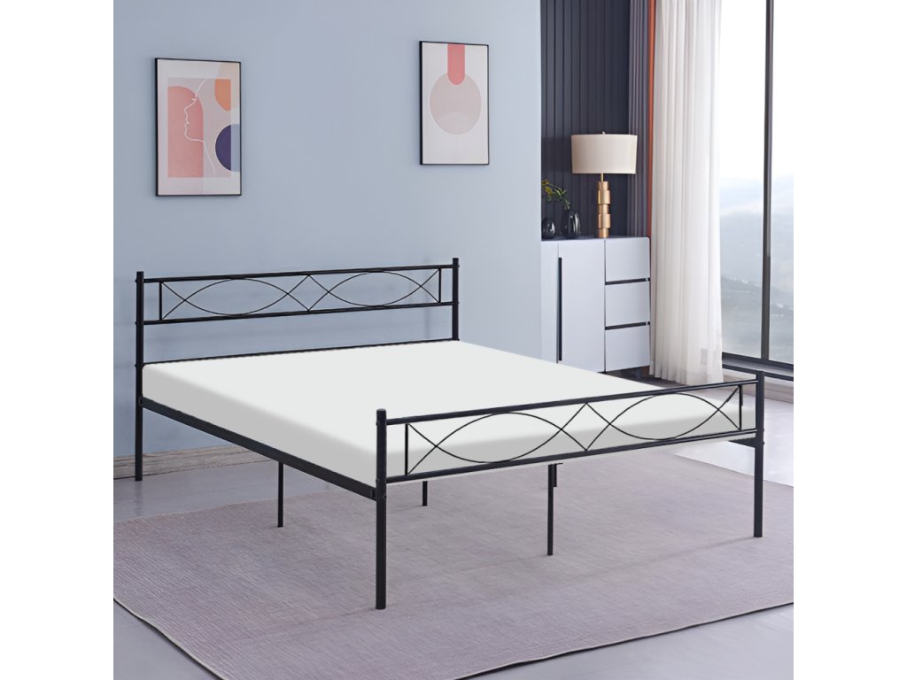 Kovová postel s roštem, 180x200, černá, STELVIA