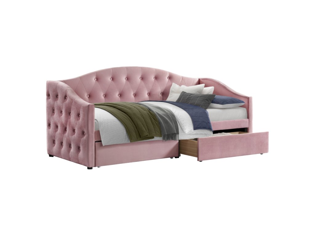 Postel s úložným prostorem, 90x200, růžová Velvet látka, ZASKA