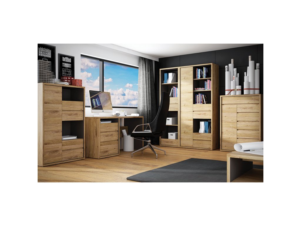 PC stůl SHELDON TYP 80 v dekoru dub Shetland nabízí dostatek prostoru pro počítač i další pracovní potřeby. Díky rozměrům a úložným šuplíkům je vhodný do domácí kanceláře i pracovny.