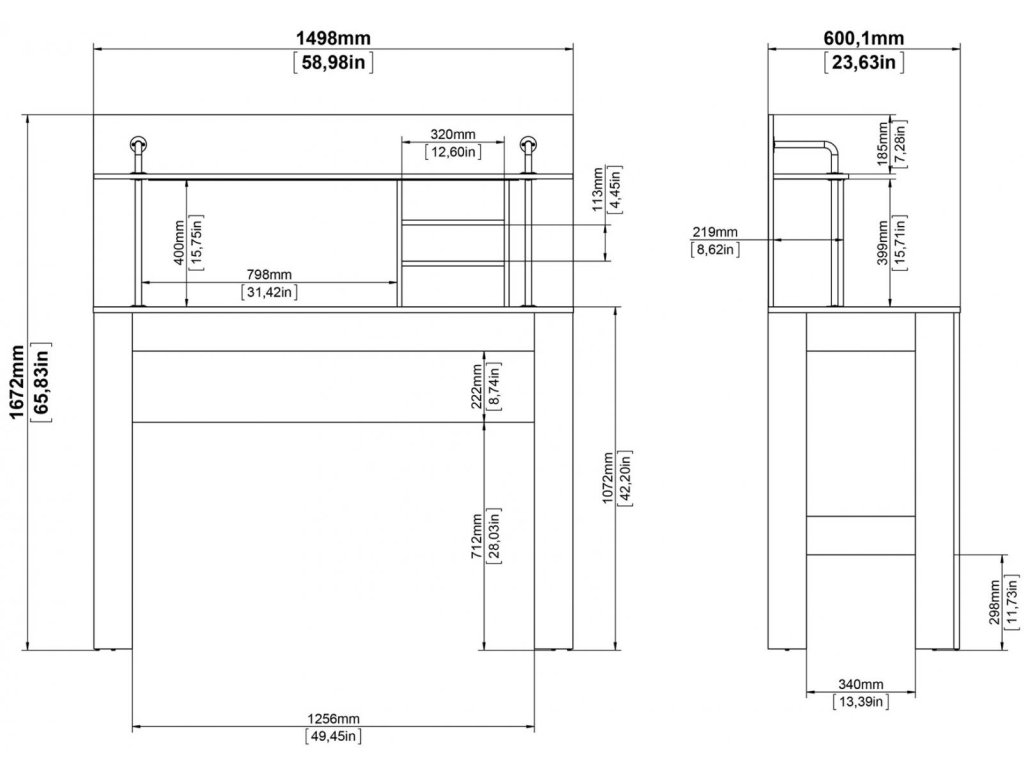 Stůl má šířku 150 cm, hloubku 60 cm a výšku 167 cm, což poskytuje dostatek prostoru pro práci i uložení potřebných věcí.