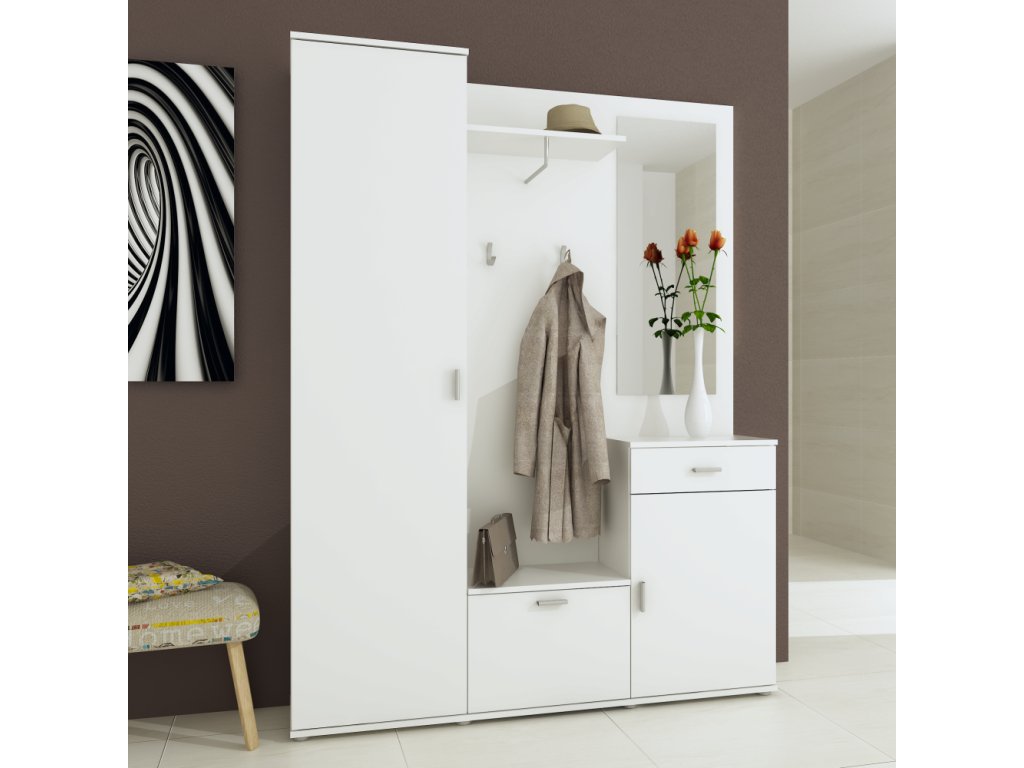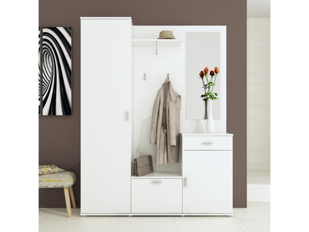 Vhodná nejen do bytů, ale i kanceláří či čekáren. Kombinuje věšák, úložné skříňky a police pro maximální organizaci prostoru.