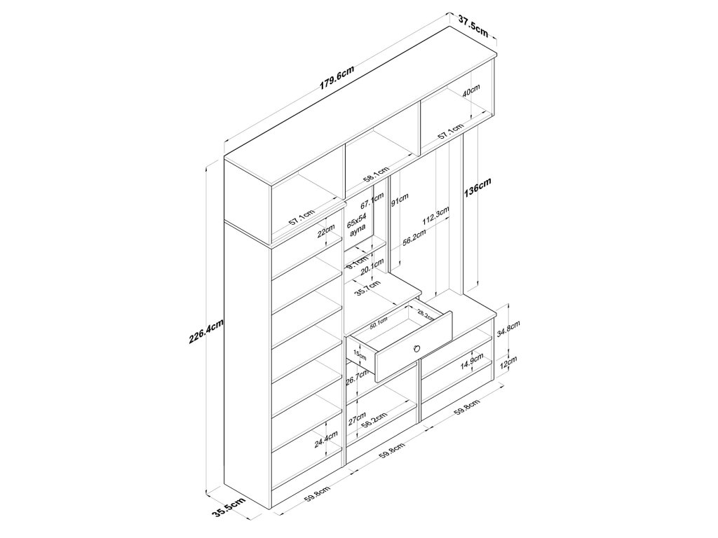 Předsíňová sestava je navržena s důrazem na estetiku a funkčnost. Nabízí všechny nezbytné prvky pro organizaci předsíně, zatímco její elegantní vzhled zanechá skvělý první dojem na každého návštěvníka.