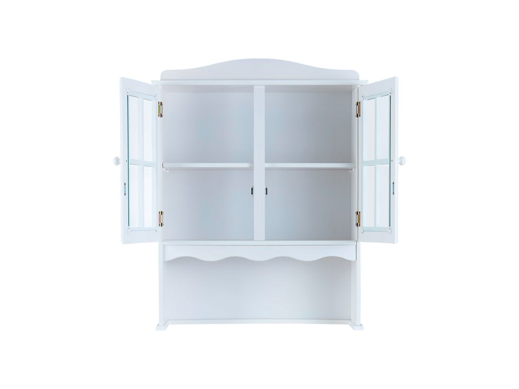 Vyroben z masivní borovice s bílým lakem, nástavec nabízí dvoje prosklená dvířka pro přehledné uložení nádobí a dekorací.