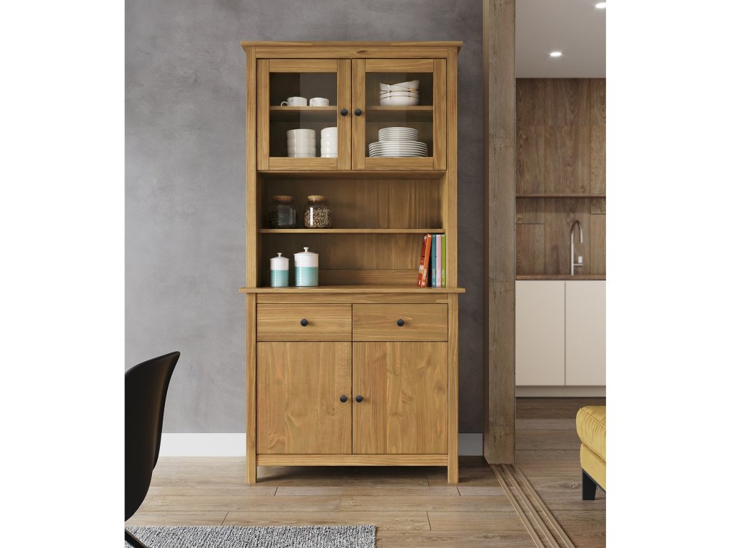 Nástavec příborníku TORINO z masivní borovice s prosklenými dveřmi
