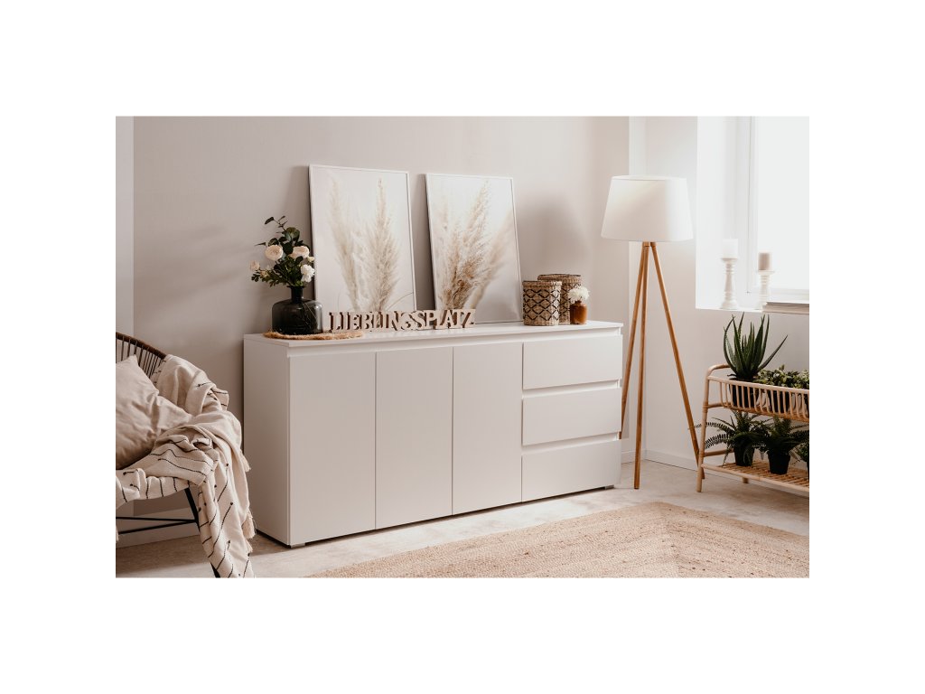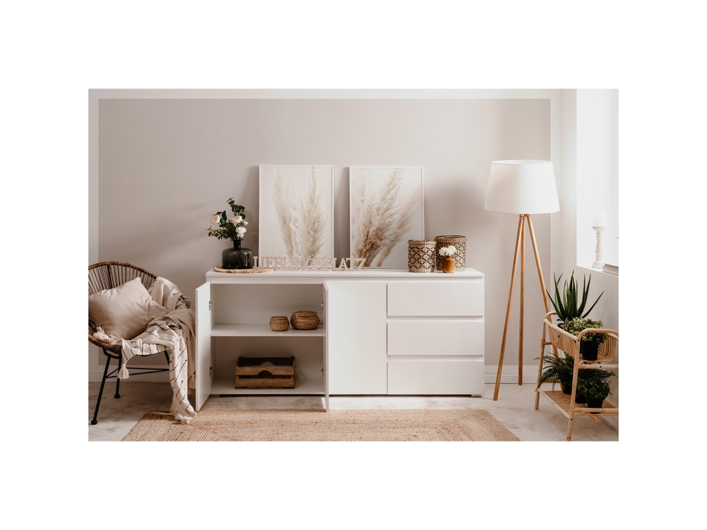 Příborník IMAGE 51A nabízí 3 zásuvky s kovovými pojezdy a 3 dvířka s variabilní policií, ideální pro organizaci jídelního servisu, příborů či drobných předmětů.