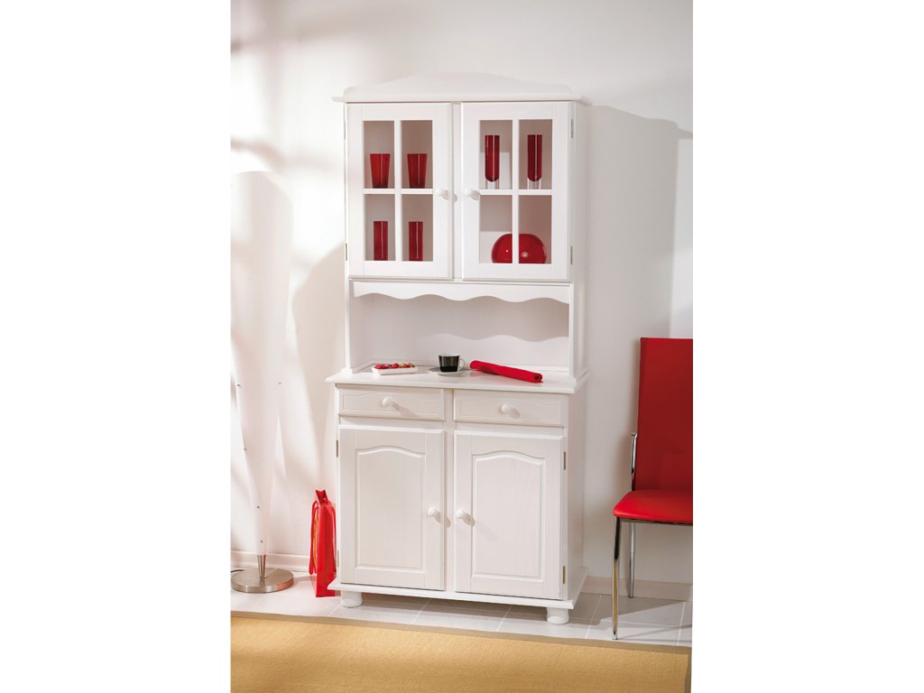 Příborník je vyroben z masivní borovice s povrchovou úpravou bílým lakem, což zaručuje pevnost a odolnost nábytku.