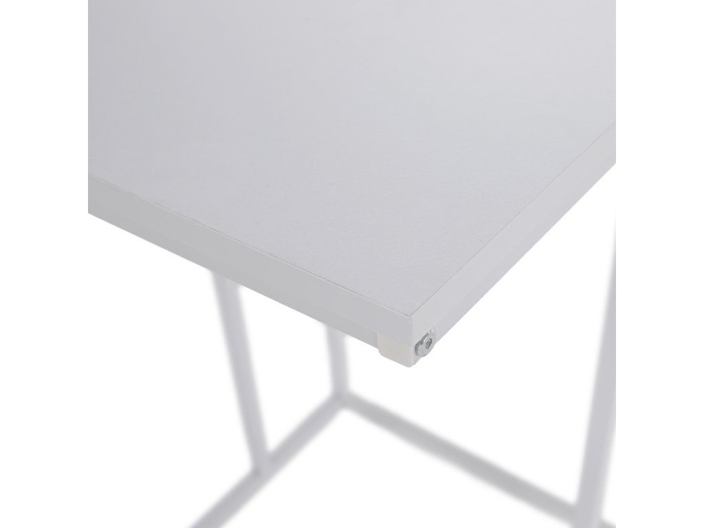 Stolek je vyroben z fóliované dřevotřísky s kovovými prvky, což zajišťuje pevnost a stabilitu konstrukce.
