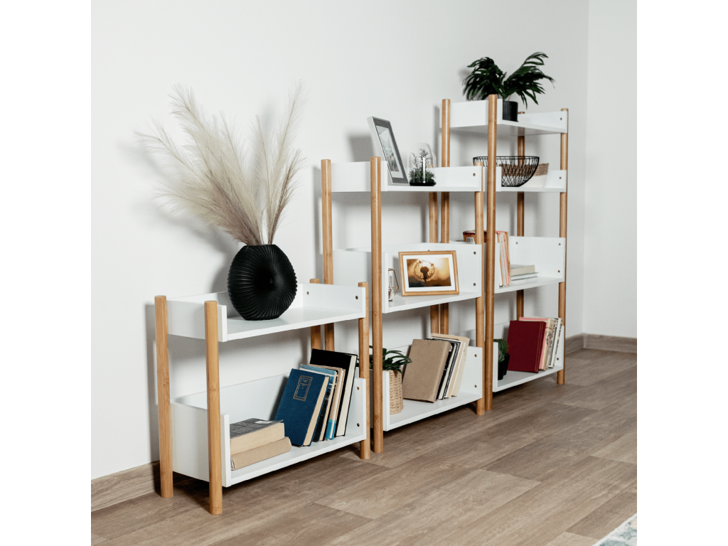 2-poličkový regál, přírodní bambus/bílá, BALTIKA TYP 1