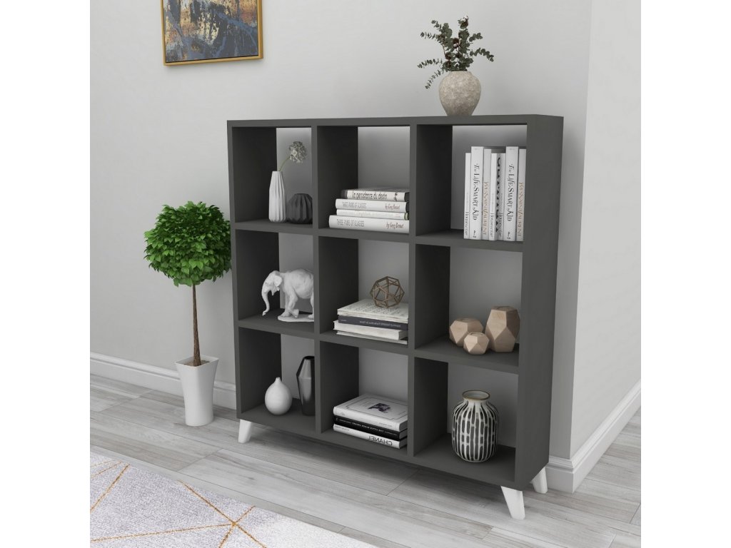 Regál CLARE antracit je vhodný do obývacích pokojů, kanceláří či skladů. Poskytuje dostatek prostoru pro knihy, dekorace nebo dokumenty.