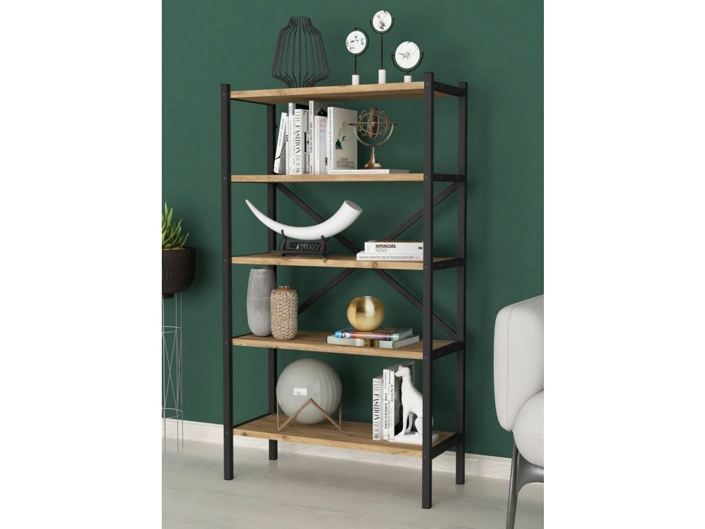 Vyroben z kovového rámu a LTD desek v barvě borovice, což zaručuje pevnost a dlouhou životnost. Police jsou dostatečně nosné pro každodenní použití.
