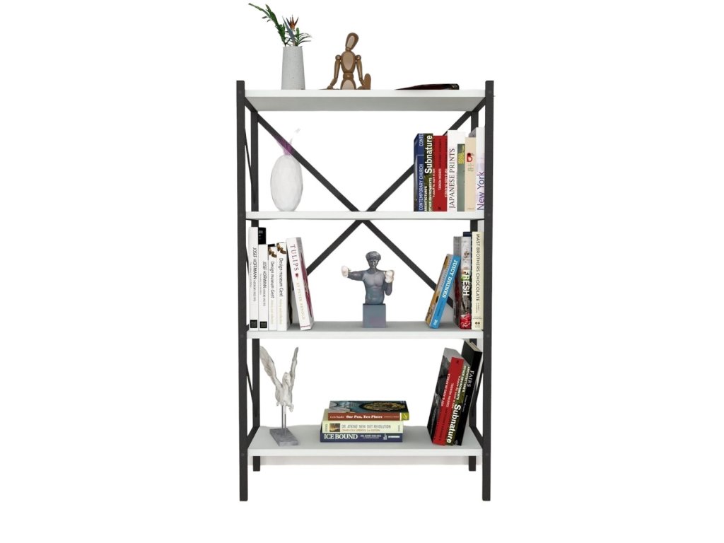 Regál KEPLER bílá je ideální pro skladování knih, dekorací nebo drobného nábytku v obývacím pokoji či pracovně. Díky čtyřem policím nabízí dostatek prostoru a přehlednost.