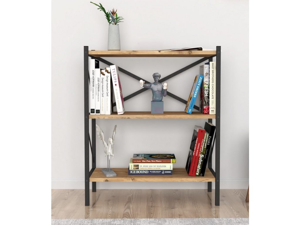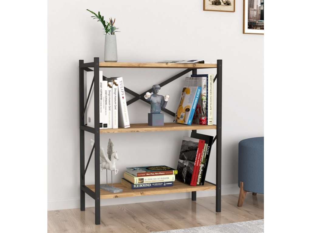 Regál KEPLER od KASTE je ideální do obývacího pokoje nebo pracovny. Nabízí tři police z LTD desky v borovicové barvě a kovový rám v matné černé. Snadno jej sestavíte a využijete k organizaci knih, dekorací či drobností.