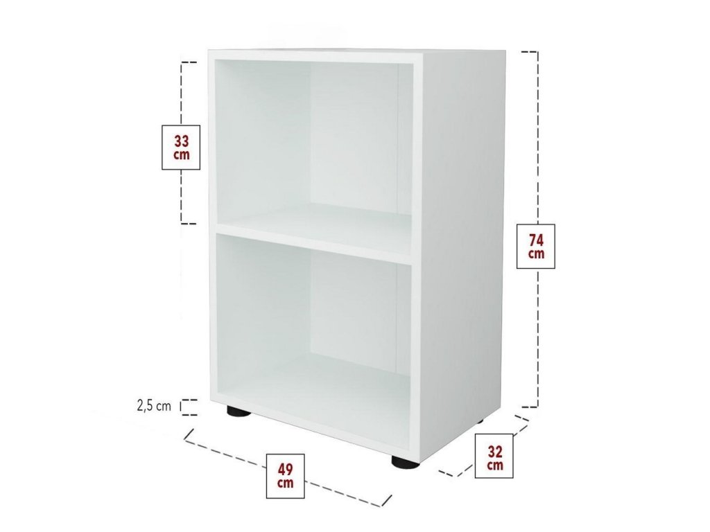 Regál má šířku 49 cm, hloubku 32 cm a výšku 74 cm, což ho činí vhodným do menších i větších prostor.