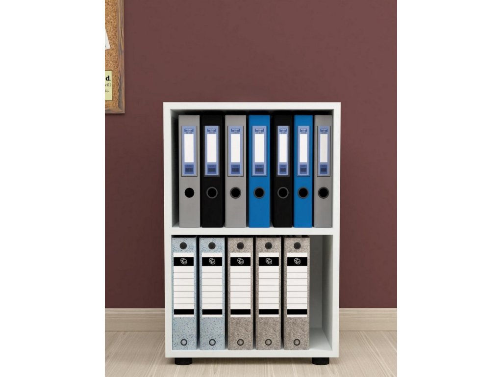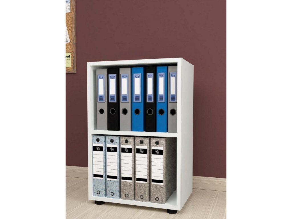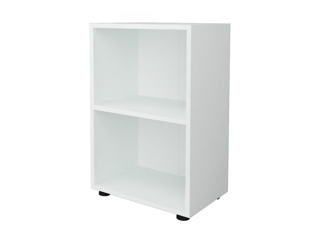 Regál s policemi KIERA 2 v bílé barvě je ideální pro obývák nebo kancelář. Umožňuje efektivní uspořádání knih, dekorací či drobností.