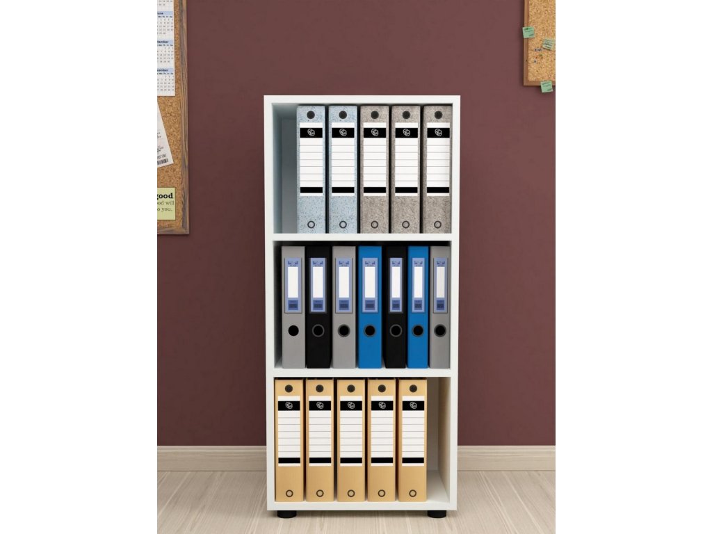 Regál s policemi KIERA 3 v bílé barvě je ideální do obývacího pokoje nebo kanceláře. Umožňuje efektivní uspořádání knih, dekorací či drobností.