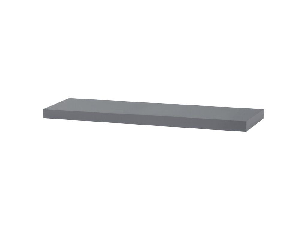 Polička z MDF v šedém vysokém lesku nabízí elegantní úložný prostor pro knihy, dekorace nebo drobnosti. Díky minimalistickému designu snadno zapadne do každého interiéru.