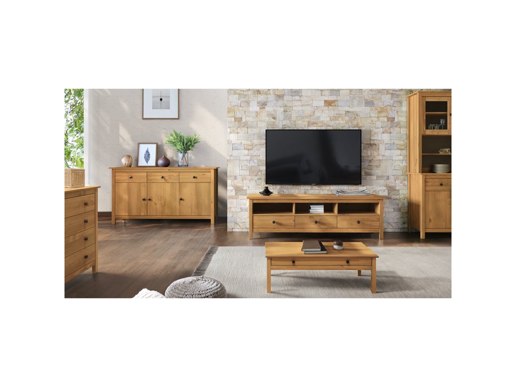 Vyrobena z voskované borovice v medovém odstínu, komoda zajišťuje dlouhou životnost a přírodní vzhled, který snadno sladíte s různými styly interiéru.