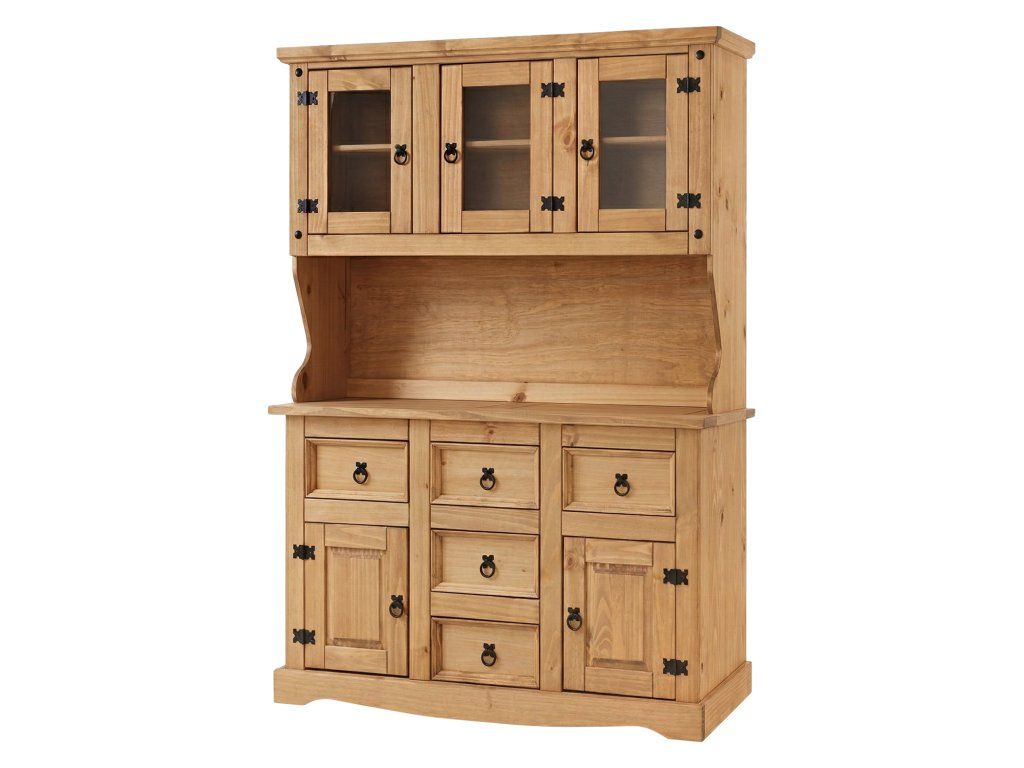 Vyrobena z masivní borovice s voskovaným medovým odstínem, komoda CORONA je odolná a snadno udržovatelná. Kovové ozdobné úchytky doplňují design a zajišťují pohodlné otevírání.