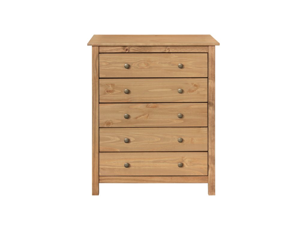 Komoda TORINO s pěti zásuvkami nabízí dostatek prostoru pro uložení oblečení, dokumentů nebo drobných předmětů. Díky kovovým pojezdům jsou zásuvky snadno vysouvatelné a odolné.