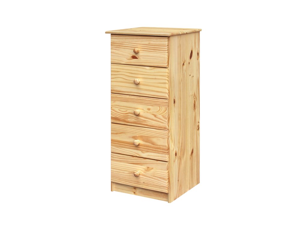 Praktický úložný prostor v úzkém provedení vhodný do menších místností. Pět zásuvek s kovovými pojezdy nabízí dostatek místa pro organizaci drobností i větších předmětů.