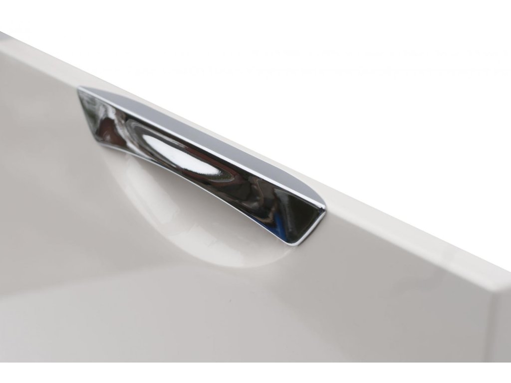 Bílé korpusy doplněné o dvířka v jasmínovém vysokém lesku s možností výběru úchytek dodávají kuchyni elegantní vzhled.