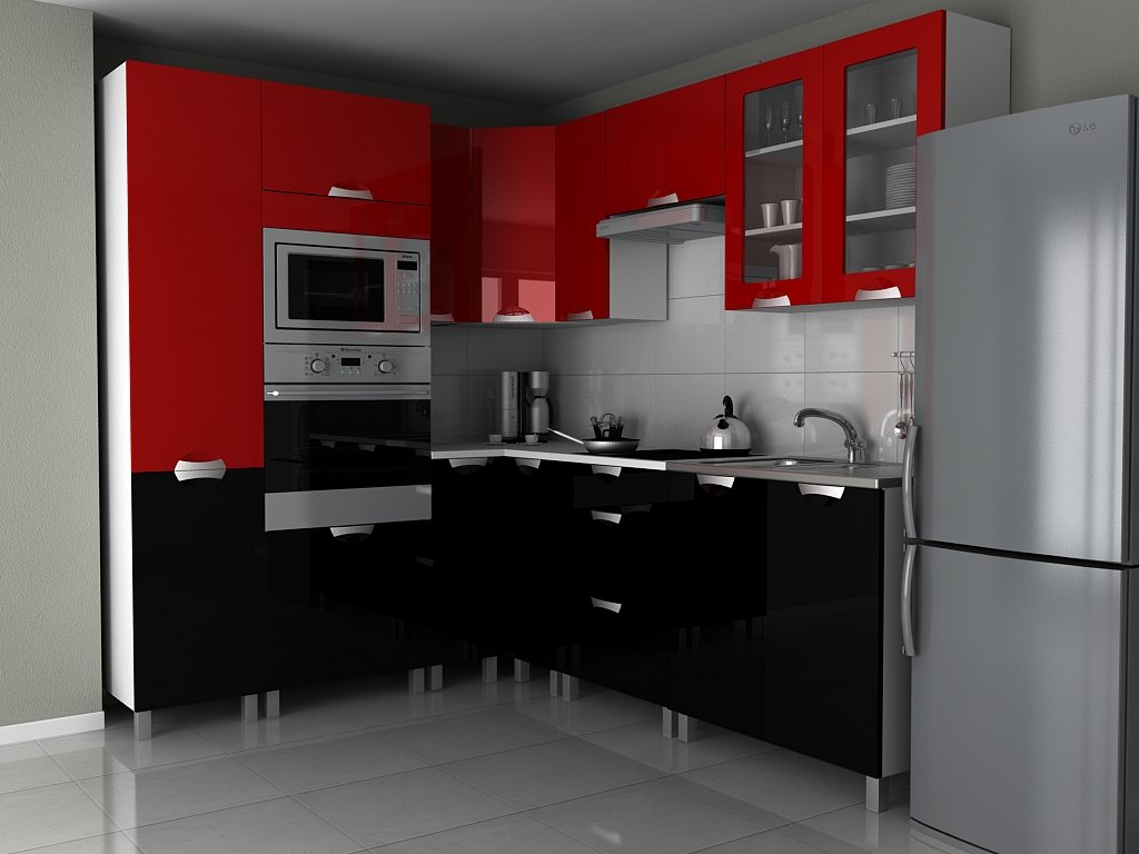Modulární rohová kuchyňská linka Milenium RLG červený/černý lesk 200 cm