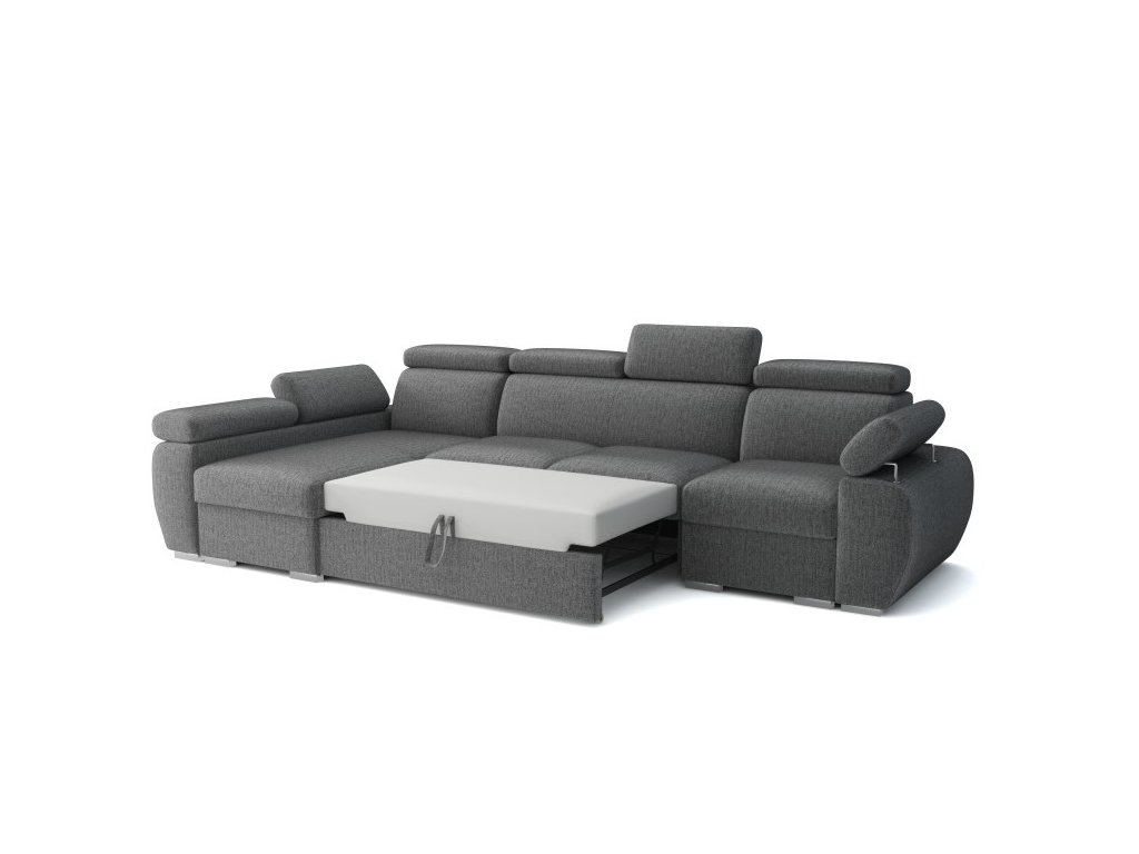Souprava je dostupná v pravém i levém provedení, s rozměry umožňující pohodlné sezení až pro více osob. Po rozložení poskytuje plochu 200x130 cm, vhodnou pro přespání hostů.