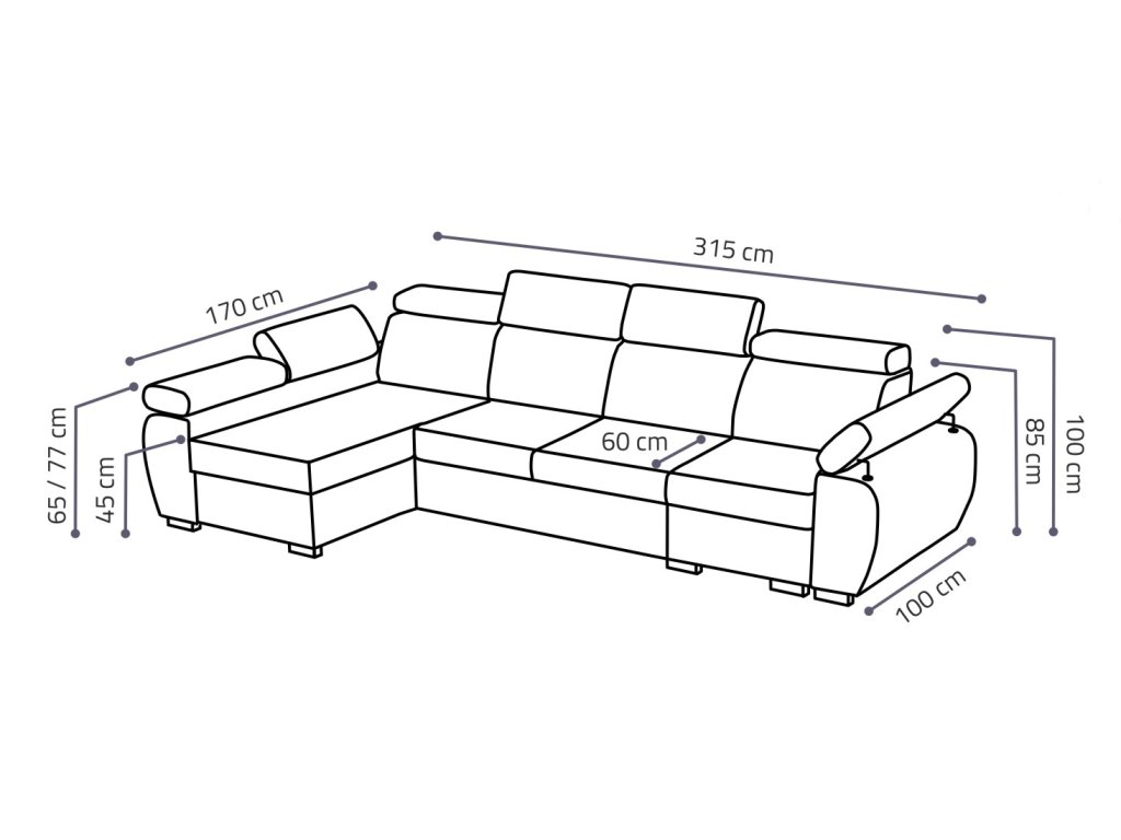 Souprava je dostupná v levém i pravém provedení, s úložným prostorem a rozkládací funkcí. Barevné provedení Aragon 20 se hodí do moderních i klasických interiérů.
