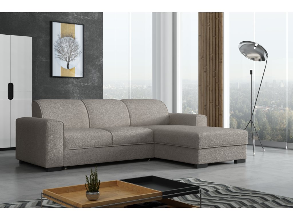 Výplň sedáků tvoří kombinace pružin faliste a kvalitní PUR pěny, což zajišťuje komfort při sezení i ležení. Sedací souprava je potažená odolnou látkou v moderním designu.