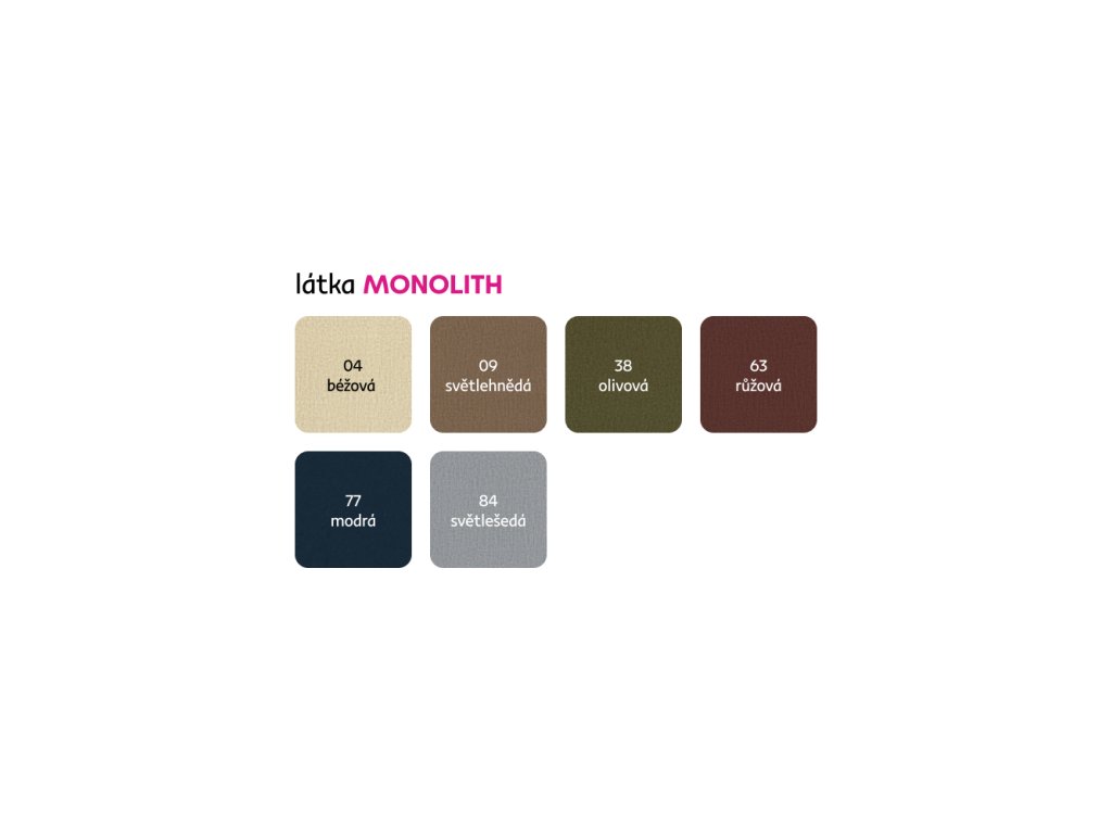 Textilie Monolith 48 s oděruodolností 100 000 Martindale zajišťuje dlouhou životnost. Dekorativní prošití a voděodolný materiál usnadňují údržbu.