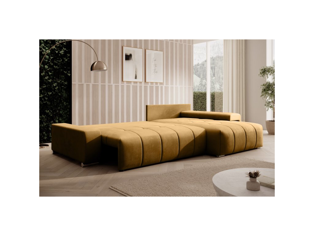 Hořčicová barva a celokožené provedení umožňují snadnou integraci do různých interiérů. Ideální pro obývací pokoje, které vyžadují flexibilitu a komfort.