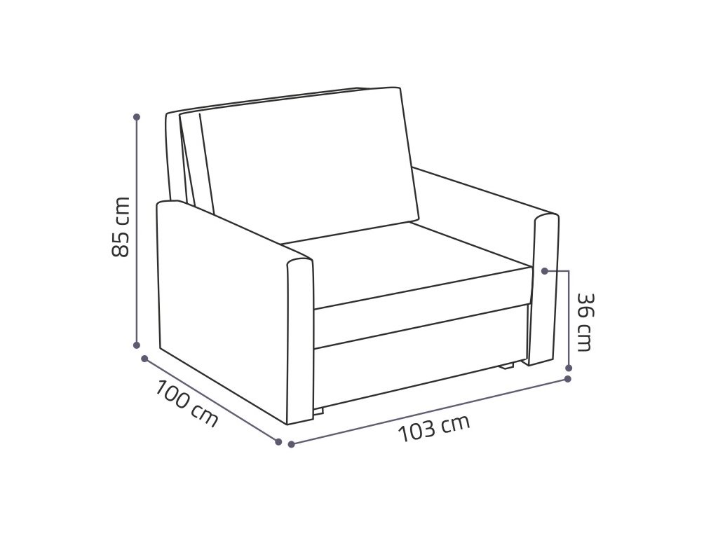 Rozměry umožňují snadné umístění v různých místnostech. Po rozložení nabízí plochu 80x196 cm. Křeslo má výšku sedu 36 cm a váží přibližně 50 kg.