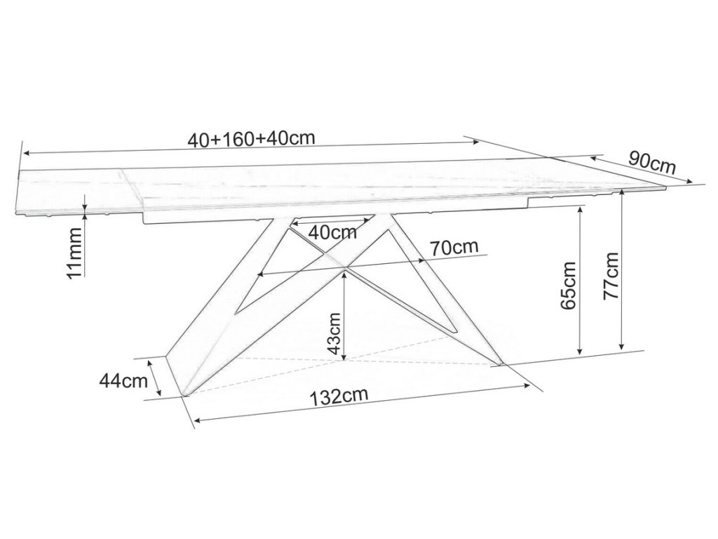 Po rozložení dosáhne délky 240 cm, což umožňuje pohodlné stolování až pro 8 osob. Původní rozměry jsou 160 x 90 cm, ideální do jídelny či kanceláře.