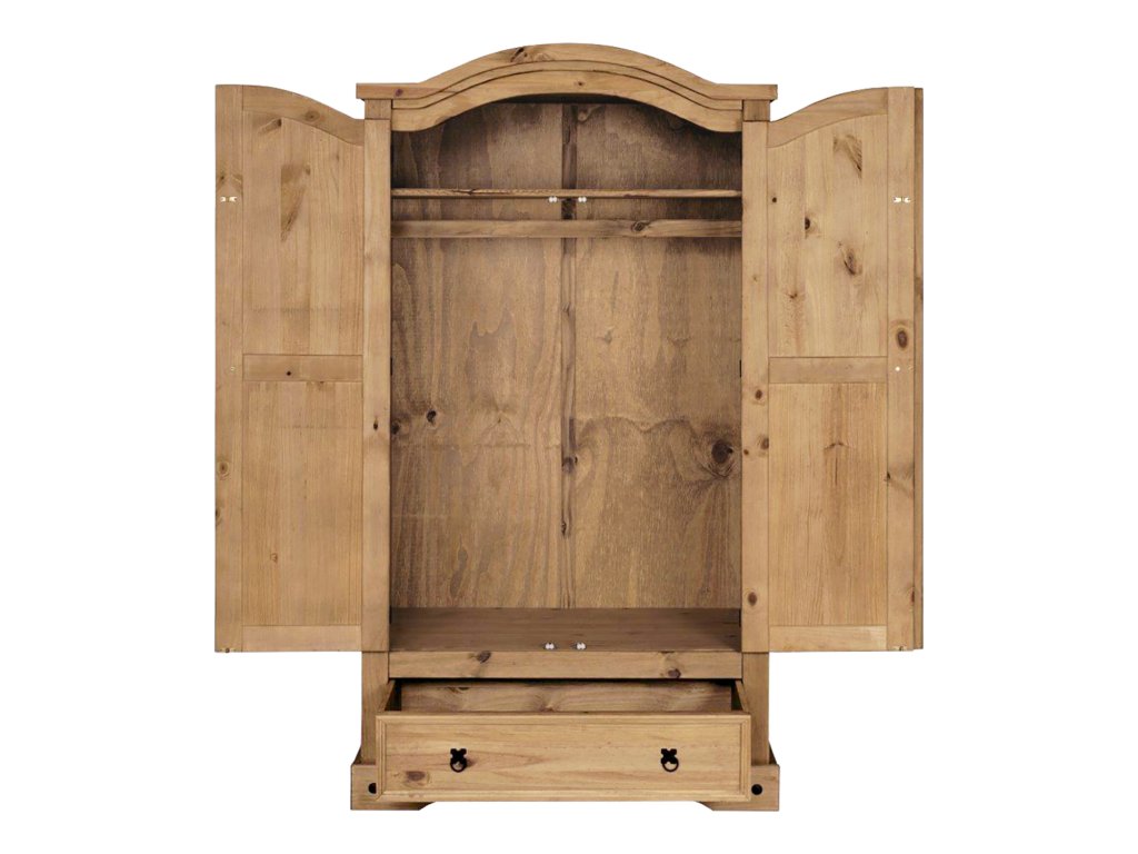 Vyrobena z voskované borovice v medovém odstínu, skříň je odolná a zároveň příjemná na dotek. Přírodní materiál zajišťuje dlouhou životnost a snadnou údržbu.