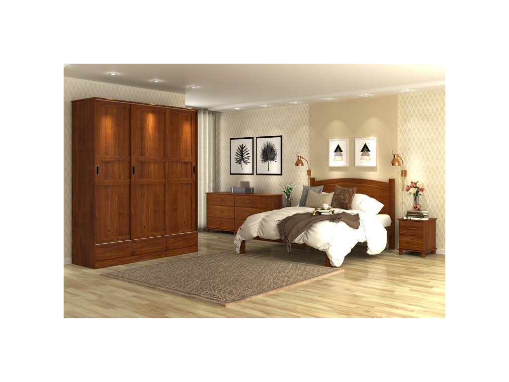 Vyrobena z masivní borovice s odolným hnědým lakem, skříň zaručuje dlouhou životnost a pevnost. Povrch snadno udržovatelný a odolný vůči poškození.