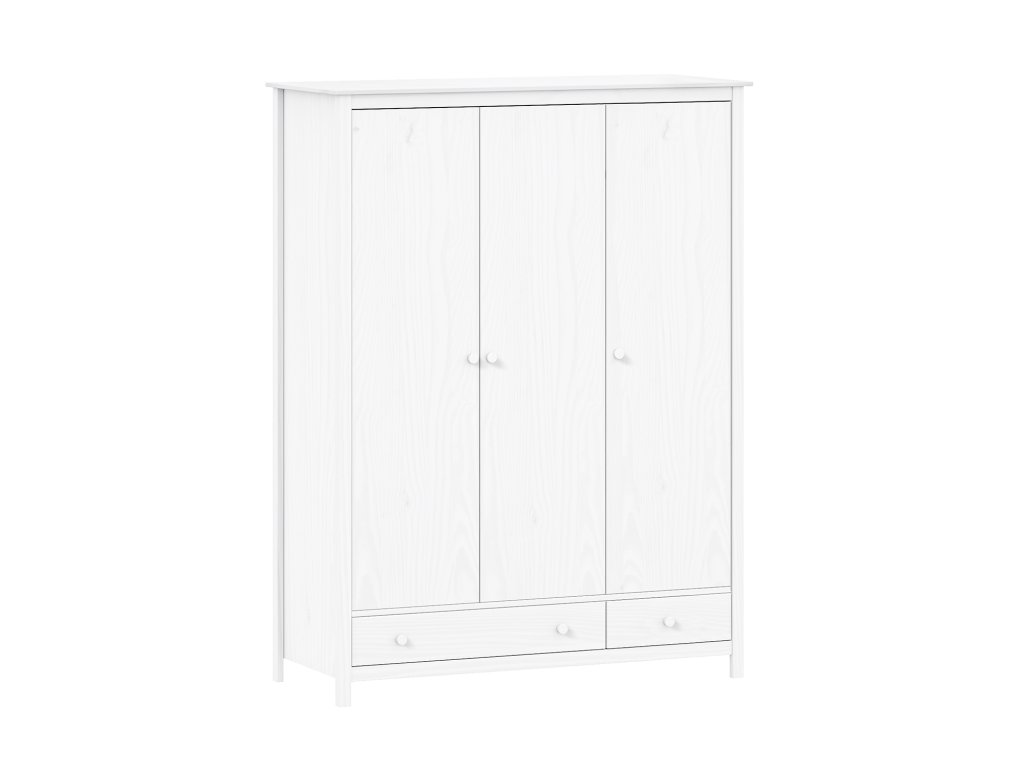 Skříň je vyrobena z masivní borovice s bílým lakem, který zajišťuje odolnost a snadnou údržbu. Díky kvalitnímu materiálu je vhodná do ložnic i předsíní.