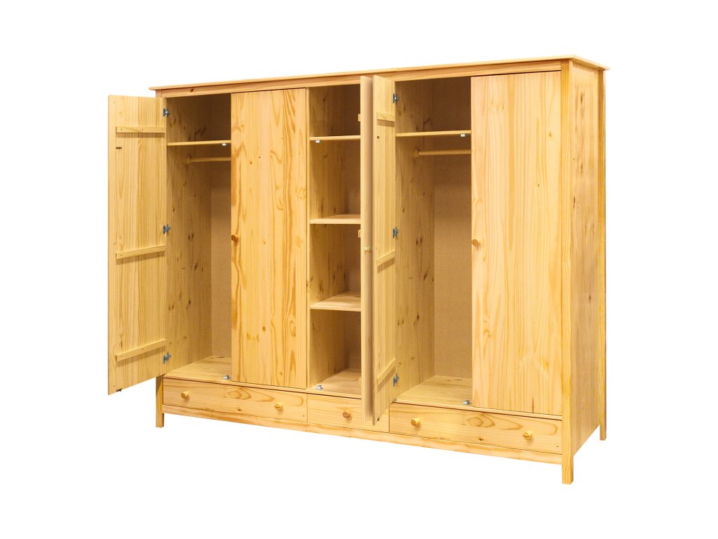 Vyrobena z masivu borovice s lakovaným povrchem, který zajišťuje odolnost a dlouhou životnost. Skříň je stabilní a vhodná i do náročnějšího prostředí.