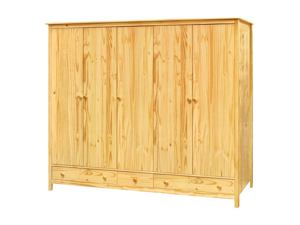 Skříň je vyrobena z masivu borovice s lakovaným povrchem, což zaručuje pevnost a odolnost proti poškození.
