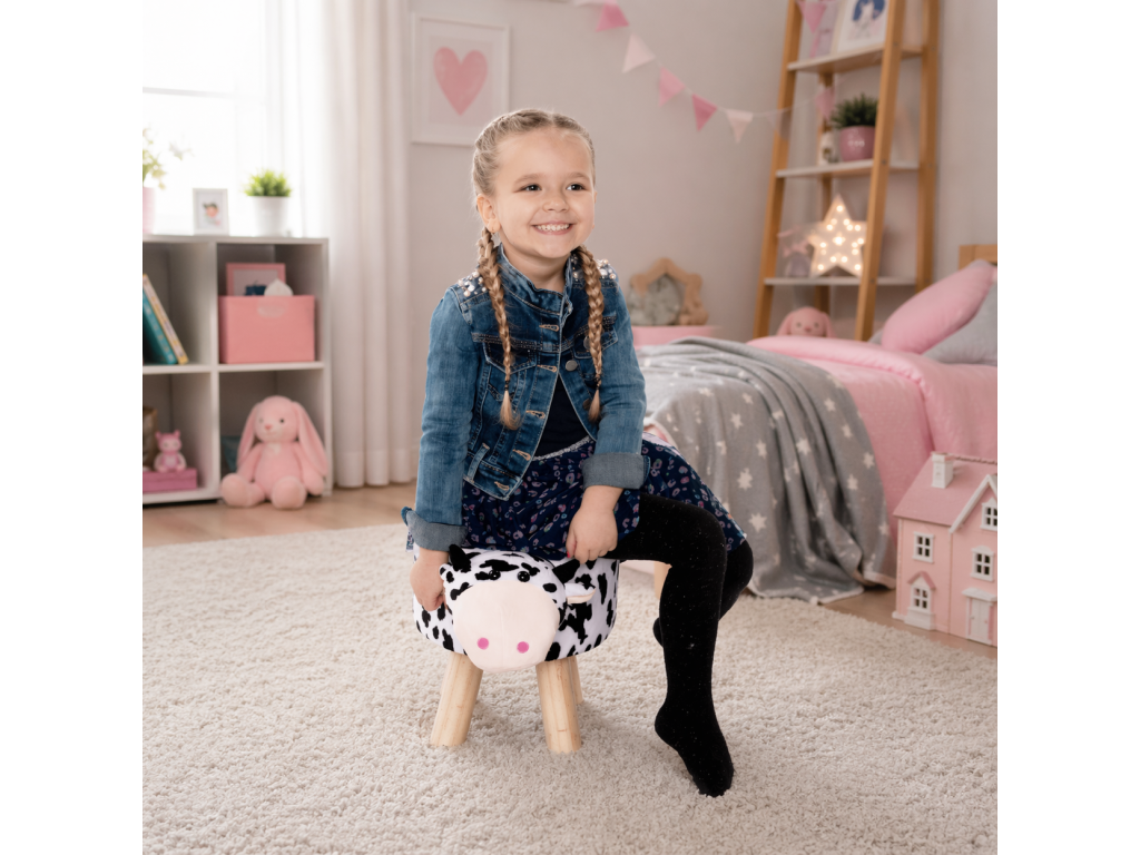Designový dětský taburet kravička Velvet bílý/černý/přírodní, MOLLY
