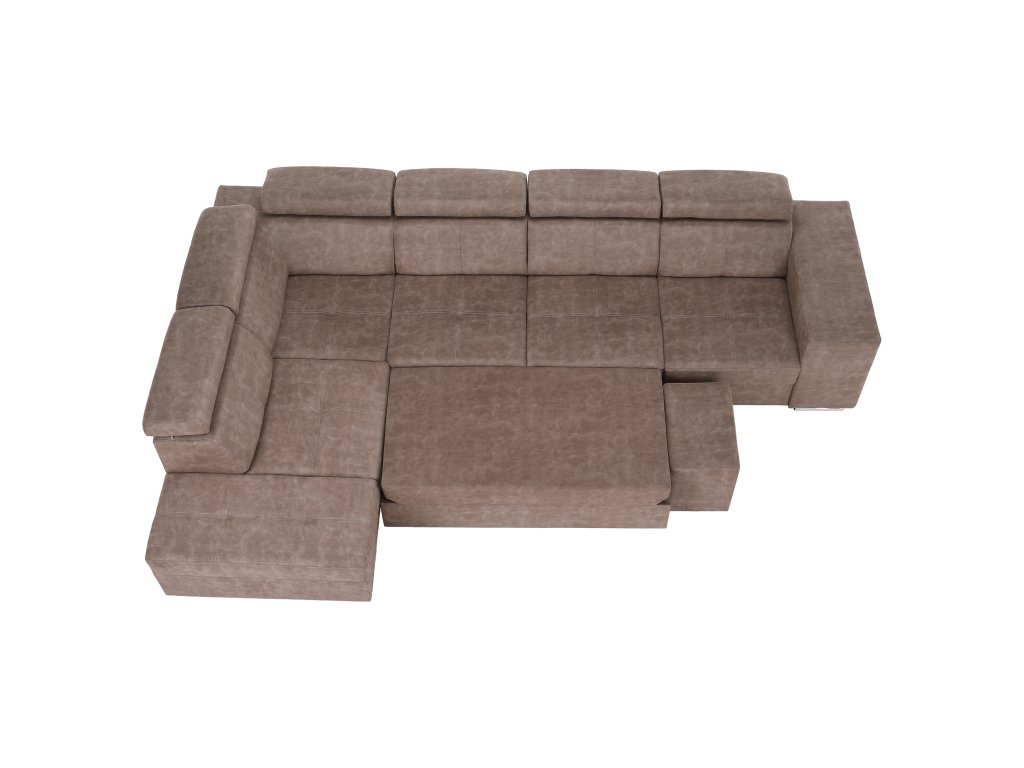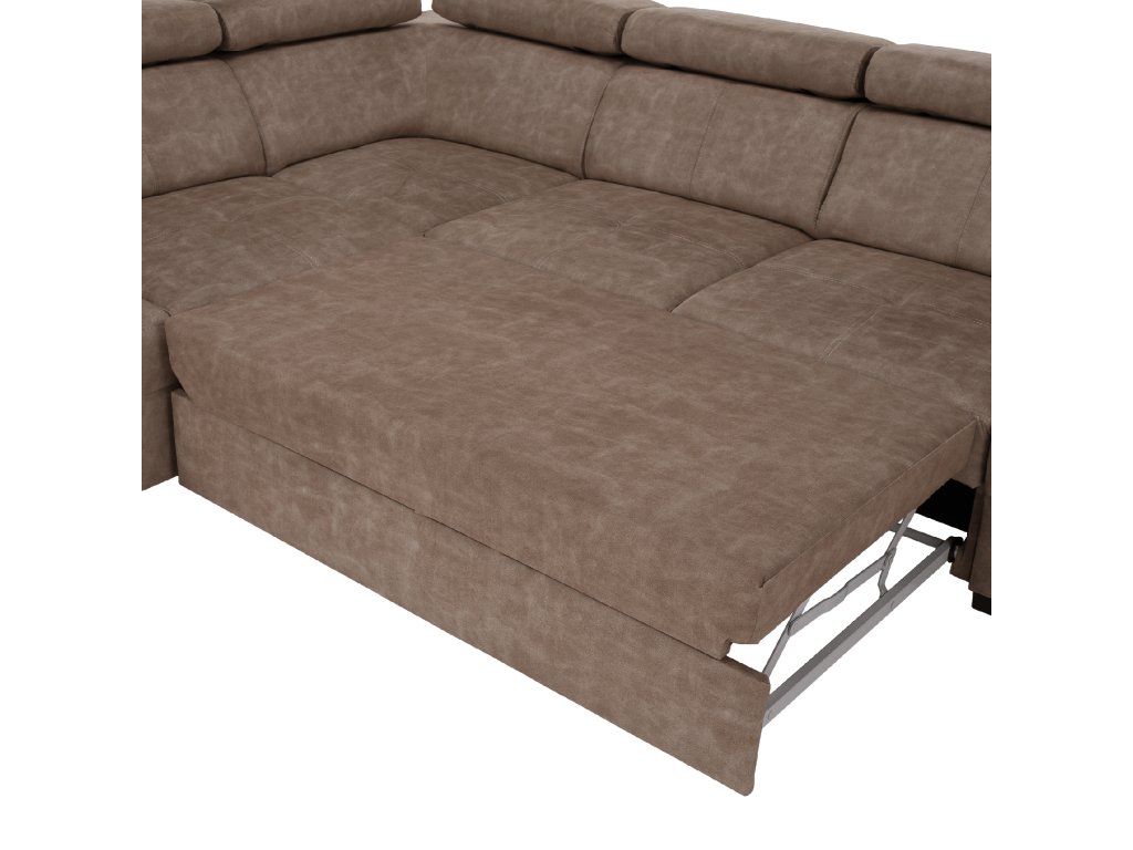 Levé provedení s polohovacími opěrkami hlavy a úložným prostorem nabízí maximální komfort a funkčnost. Rozměry umožňují pohodlné spaní i každodenní sezení.