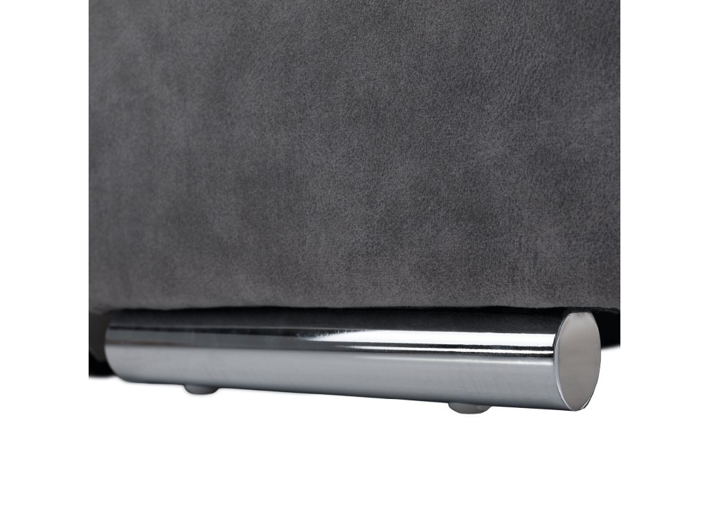 Čalounění z látky Country 17 v šedé barvě je odolné vůči oděru, konstrukce je vyrobena z borového a bukového dřeva s chromovými nožičkami. Souprava je celočalouněná a vhodná do moderních interiérů.