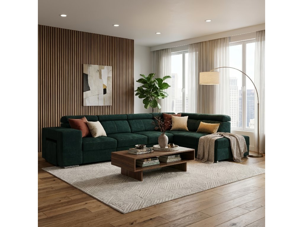 Ideální pro větší obývací prostory, nabízí komfortní posezení a úložný prostor. Vhodná pro každodenní použití i společenské setkání.