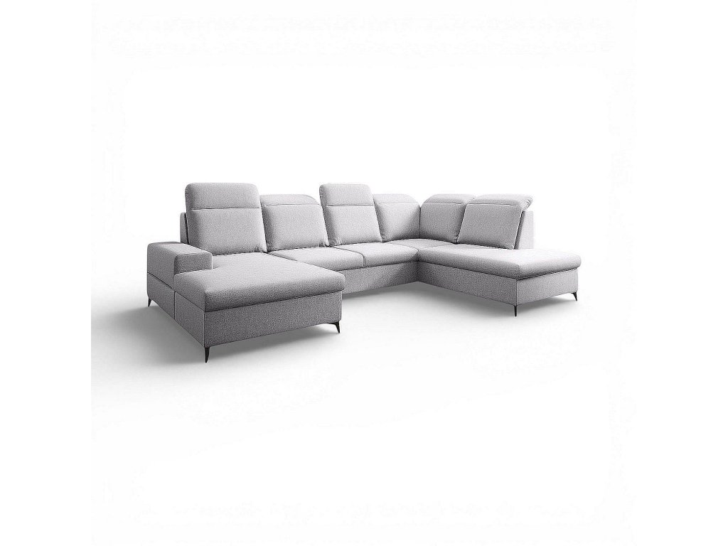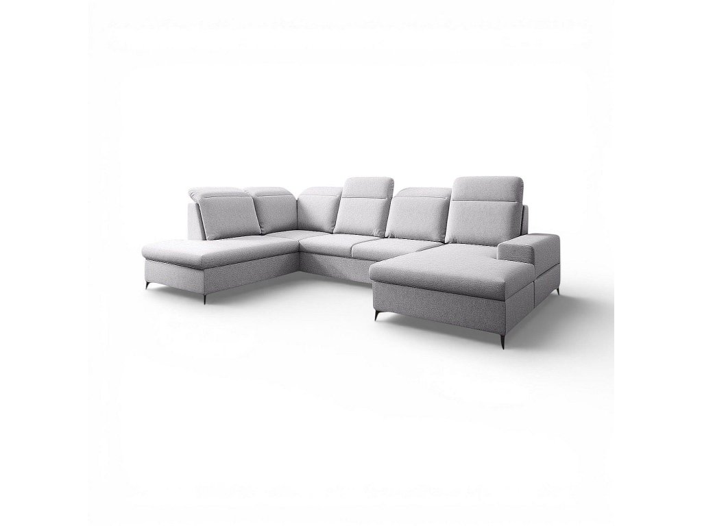 Sedací souprava LORETA U ve tvaru U, rozkládací, s úložným prostorem a má regulovatelné záhlavníky.