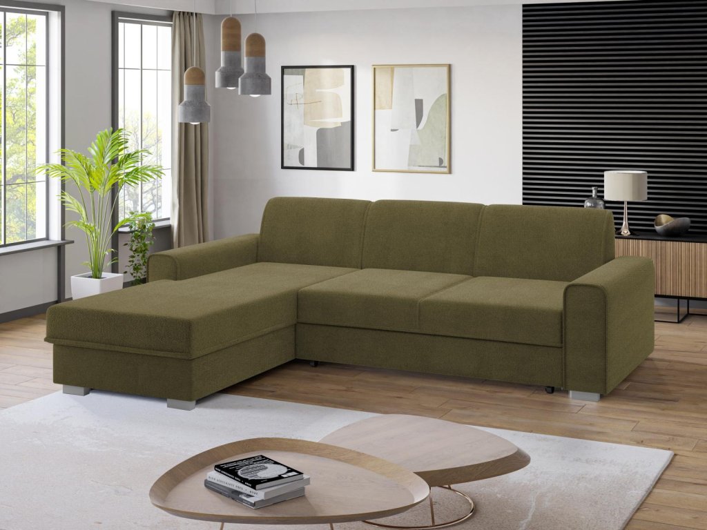Sedací souprava Lubor L khaki nabízí komfortní posezení díky kombinaci pružin faliste a kvalitní PUR pěny. Ideální pro sledování televize nebo odpočinek po náročném dni.