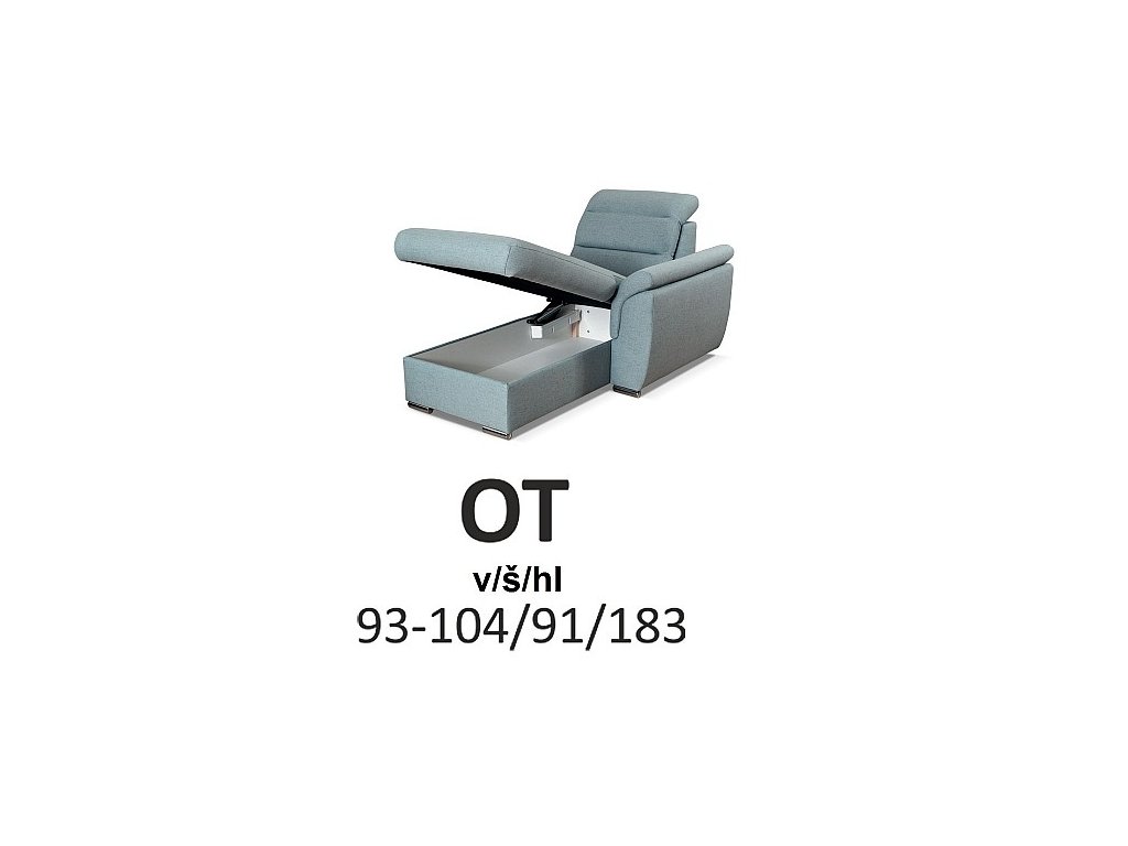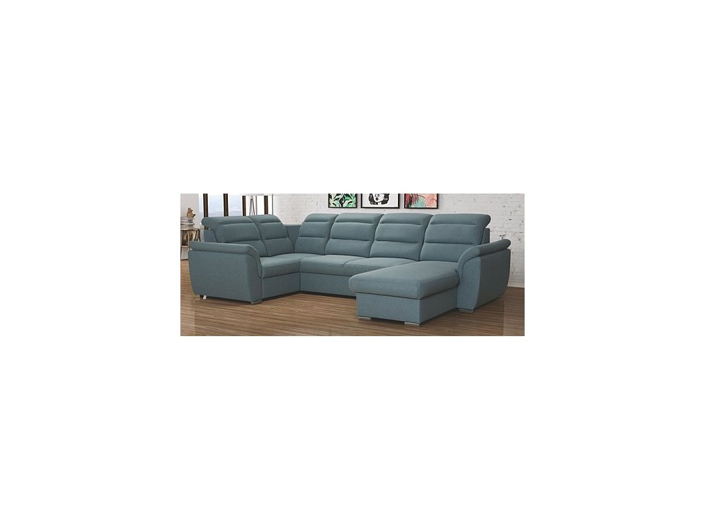 Sedací souprava MELANIA U1 je rozkládací s úložným prostorem, ideální do obývacího pokoje nebo kanceláře. Polohovatelné opěrky hlavy zajišťují komfort při odpočinku či sledování televize.