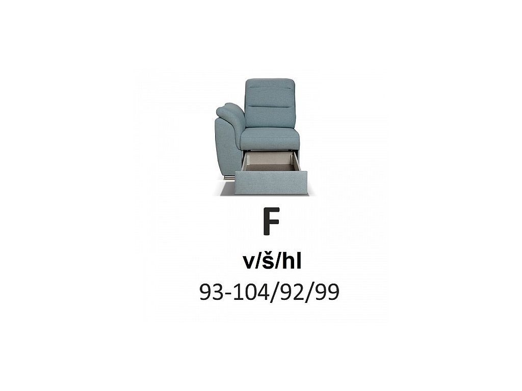 Možnost levé nebo pravé varianty umožňuje přizpůsobit sedačku prostoru. Čalouněná záda ji činí vhodnou do prostoru bez nutnosti opěry ke zdi.
